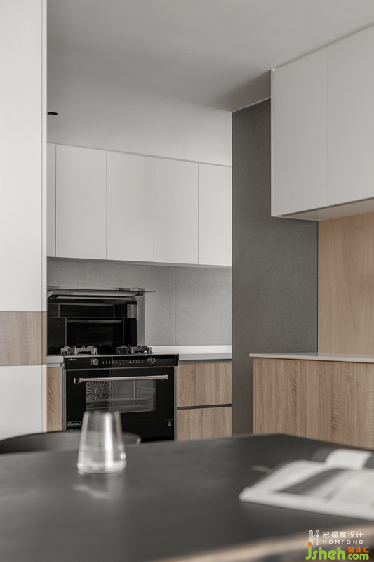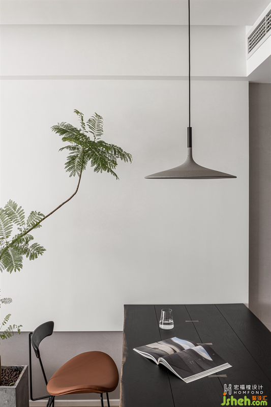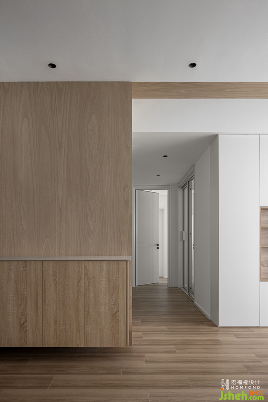 走廊舍棄多余的裝飾,家居設(shè)計通過材料、形式、光線的均衡融合營造出舒心的平靜力。