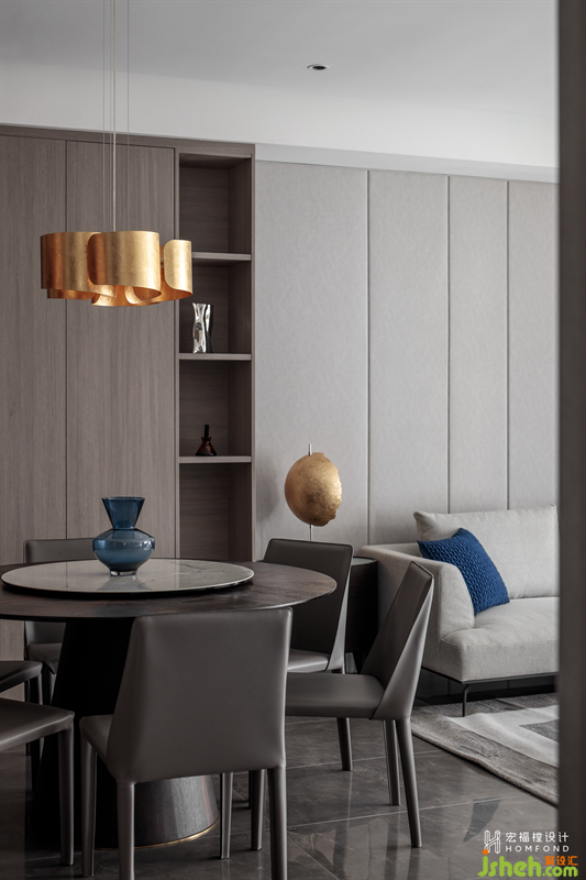 以流暢干凈的線條對(duì)空間進(jìn)行框景,不同的灰調(diào)與布藝、大理石、金屬等材質(zhì)進(jìn)行融合,貫穿在硬裝、家具、裝飾品中,詮釋經(jīng)典且舒適的現(xiàn)代家庭氛圍。