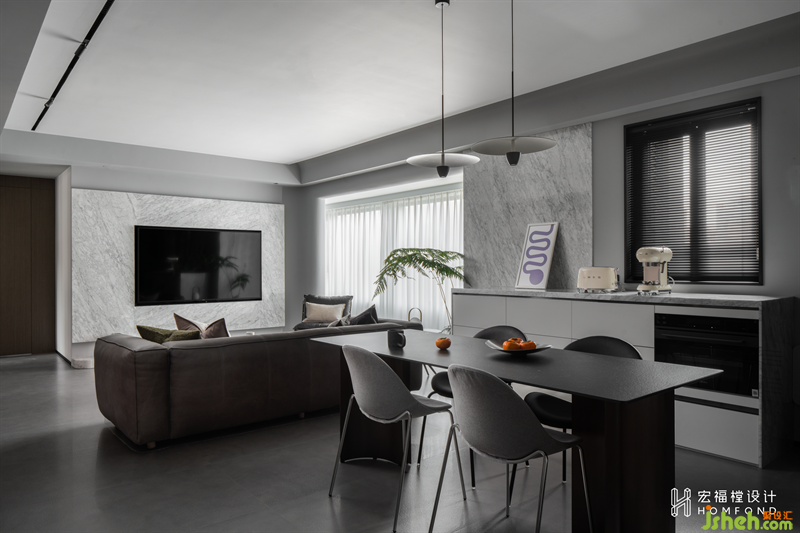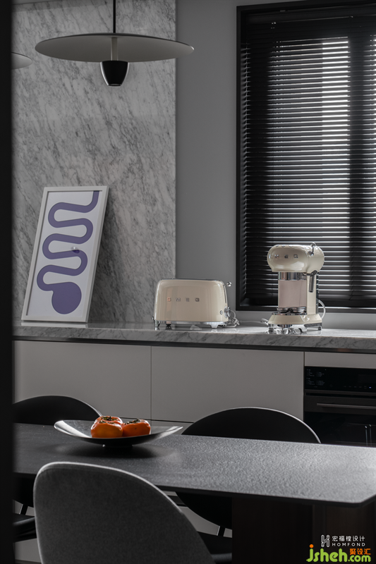 定制餐廳邊柜,充當(dāng)屬于兩人的咖啡吧臺,這樣貼近生活的居家設(shè)計讓心情倍感愜意,是獲取幸福的重要途徑,也是設(shè)計師傳遞給居住者的重要概念。