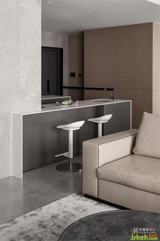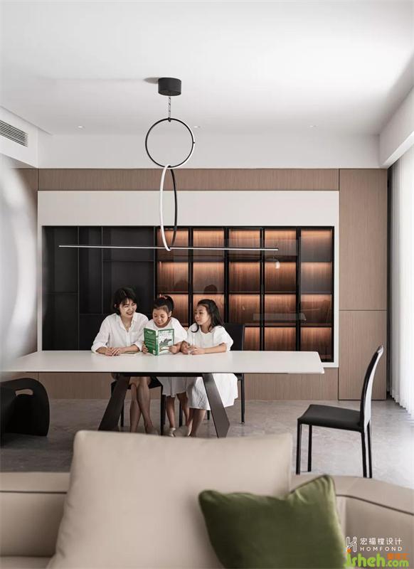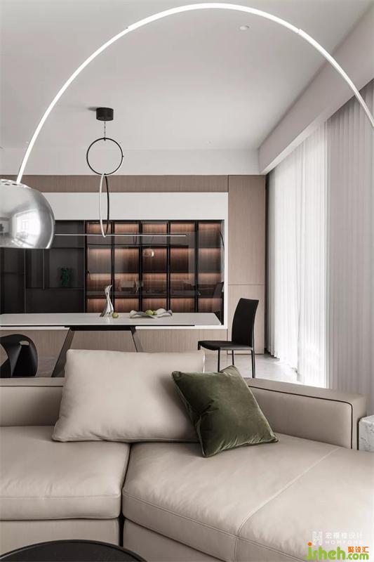 220m2 空間當(dāng)中,低飽和色彩中滲透的包容與溫暖、極簡元素組合構(gòu)成的視覺主體,我們只取其最純粹的有機(jī)形式進(jìn)行構(gòu)造。通過對居住者的了解及空間的探究設(shè)計,創(chuàng)造出一個既符合屋主生活習(xí)慣、審美偏好,以及優(yōu)化居住者生活節(jié)奏和方式的趣味居住空間。