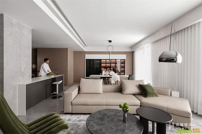 探索日常,為居住者打開公共空間視野,解析并融合玄關(guān)、廚房、餐廳、客廳、陽臺的功能屬性來優(yōu)化居住者的日常需求。