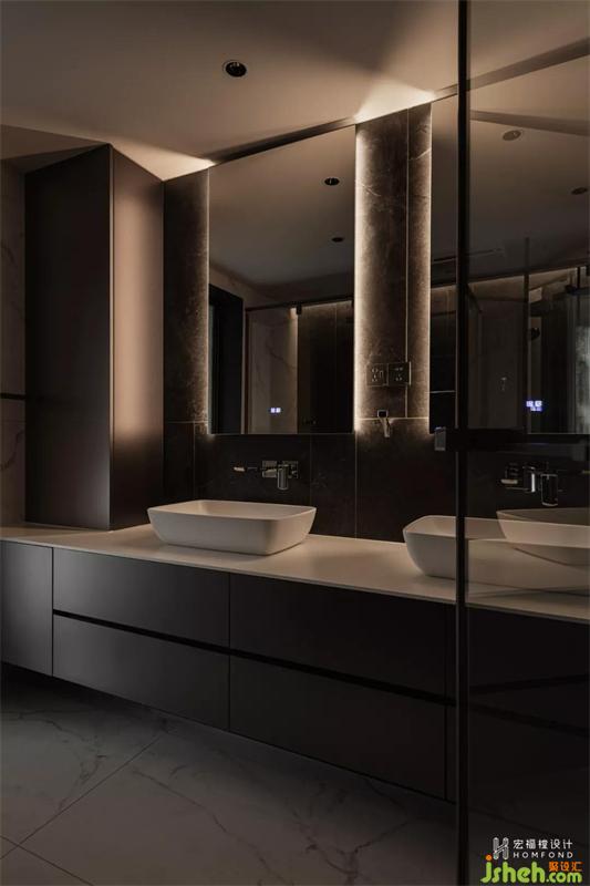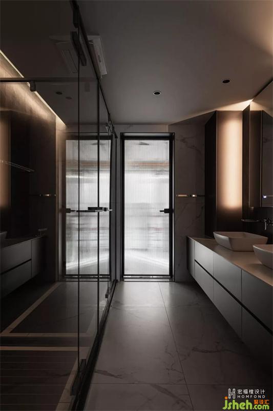 如何通過設計讓居住者的日常生活毫不費力,是一個非常值得深思和考慮的重要問題。原始主衛(wèi)有足夠的空間使用,但我們根據(jù)對屋主的了解,只提取最重要的生活需求。在進行干濕三分離后,直接將其一分為二,改造為從另一側進入的次衛(wèi)空間,方便孩子們使用。