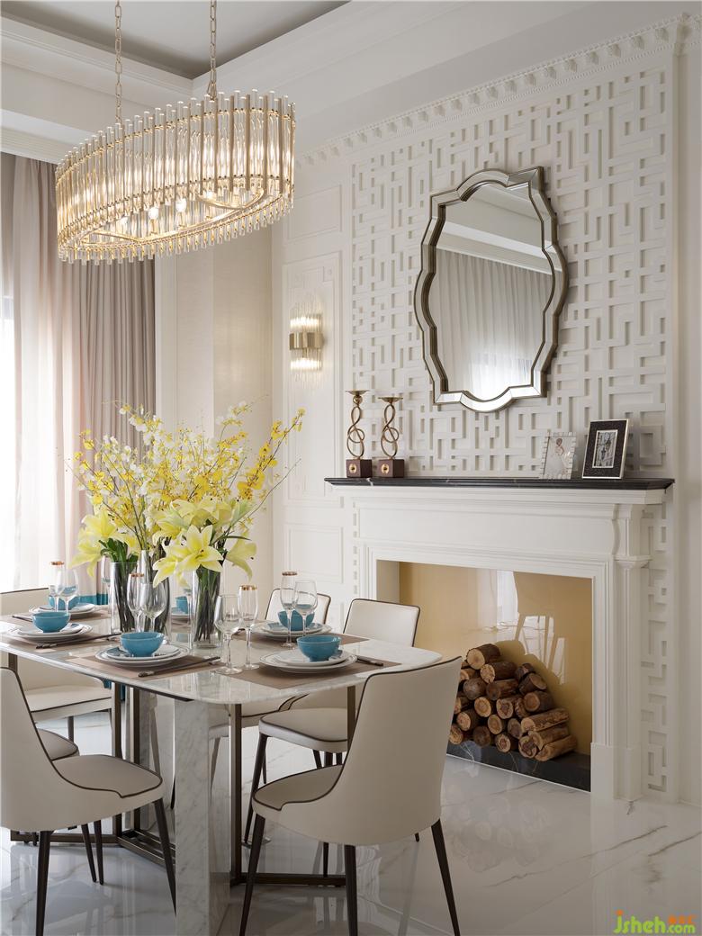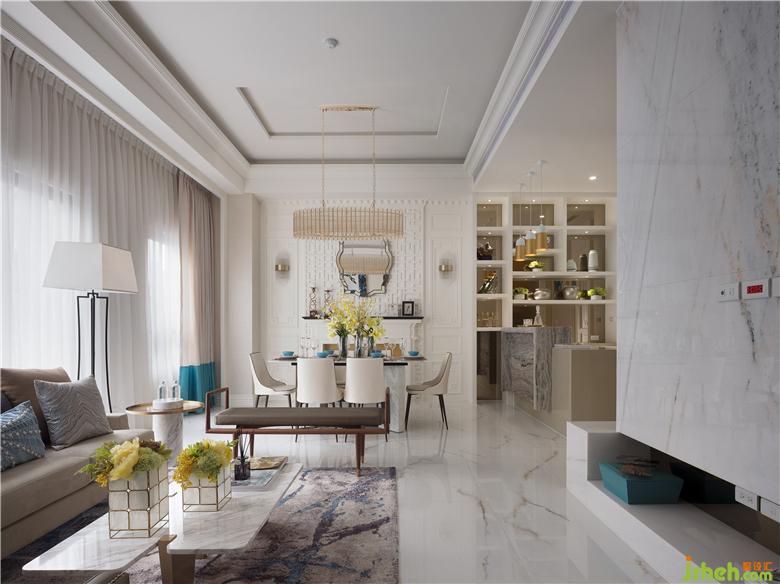 以米白色為主色調(diào),點綴些金色圍塑輕奢優(yōu)雅的質(zhì)感,搭配屋主喜愛的孔雀藍(lán)色調(diào),鋪敘華而不奢的時尚新古典。穿過深咖啡色大理石門斗,開闊視感浮現(xiàn)于眼前,瞬間能感受到明亮采光的雅致公領(lǐng)域,每個家具軟件都是精心挑選搭配過后的成果,由低至高低調(diào)塑造層次感,餐廳主墻以東方韻味的客制紋路與線板交織,搭配西式線條造型鏡面及絢爛高雅的水晶燈,映襯出華美時尚的清麗風(fēng)情。裝修公司