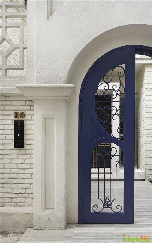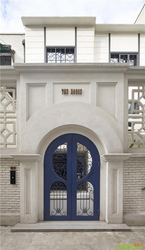 THE HOUSE在弄堂內(nèi)一眾傳統(tǒng)的老房子中十分醒目,大概源于她的摩登現(xiàn)代風(fēng)格。原本封閉的大門被夾有通透感的雕花處理,室內(nèi)設(shè)計(jì)師以明亮的藍(lán)色提升現(xiàn)代感,周圍墻面和門楣采用仿石材的真石漆來(lái)翻新,表面的顆粒感和淺色的暖色調(diào)讓整個(gè)建筑外觀顯得優(yōu)雅不失簡(jiǎn)約,細(xì)膩而貼近自然。