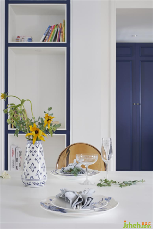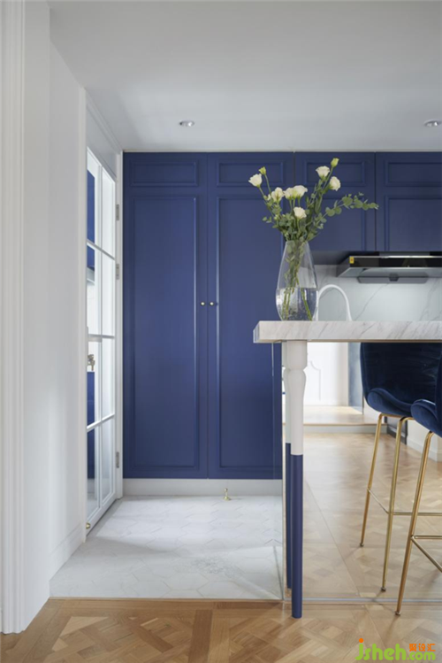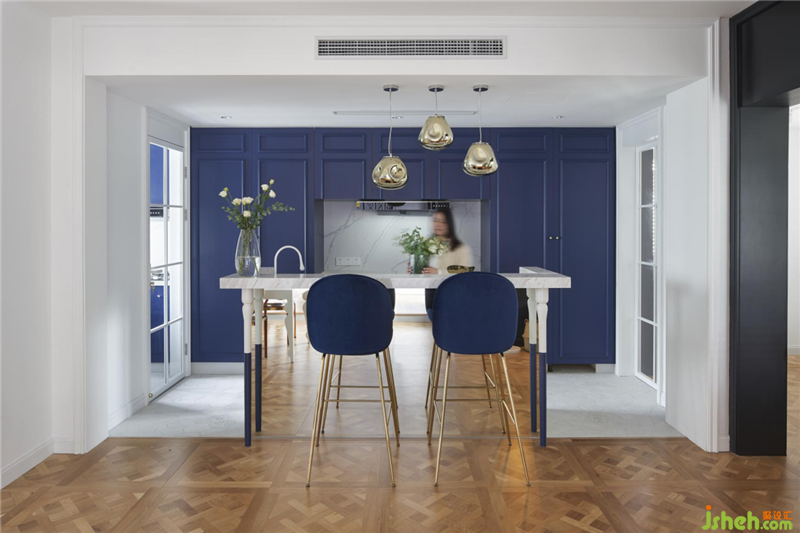 除了基本的封閉式廚房,還添設(shè)了一個西廚,利用中西餐結(jié)合的方式,既節(jié)約空間又拓展空間,體現(xiàn)了在上海也會有西式的生活方式,將空間的動線集中起來,線條流暢化,在日常生活中更加能感受到動線的優(yōu)化和功能分區(qū)的合理安排,保證功能和實用。