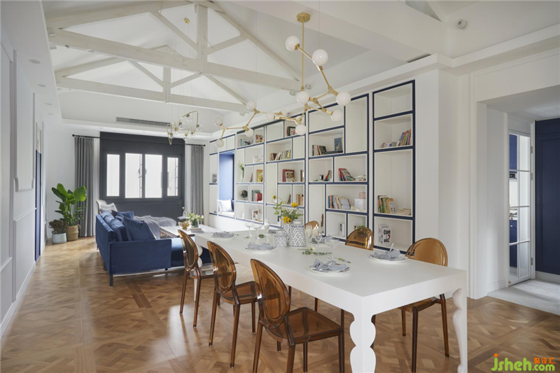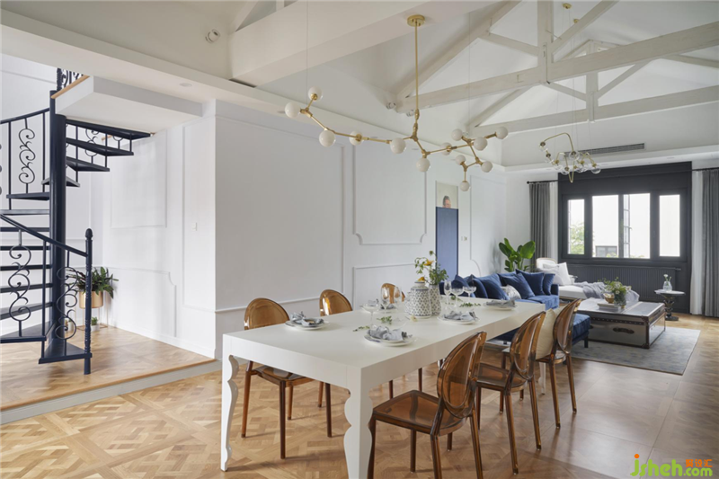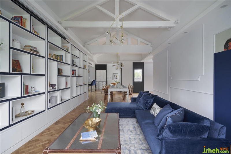 把整個房屋原來沒有利用到的尖頂打開,重新設(shè)計,將原來的木梁全都裸露出來,在這基礎(chǔ)之上,做了隔溫隔熱加固等系統(tǒng),重新修復(fù),使木梁的結(jié)構(gòu)和美觀同時兼顧,使整個空間的高度達(dá)到了5米多,凸顯老洋房的味道,是真實生活方式和在世界上的歸屬。