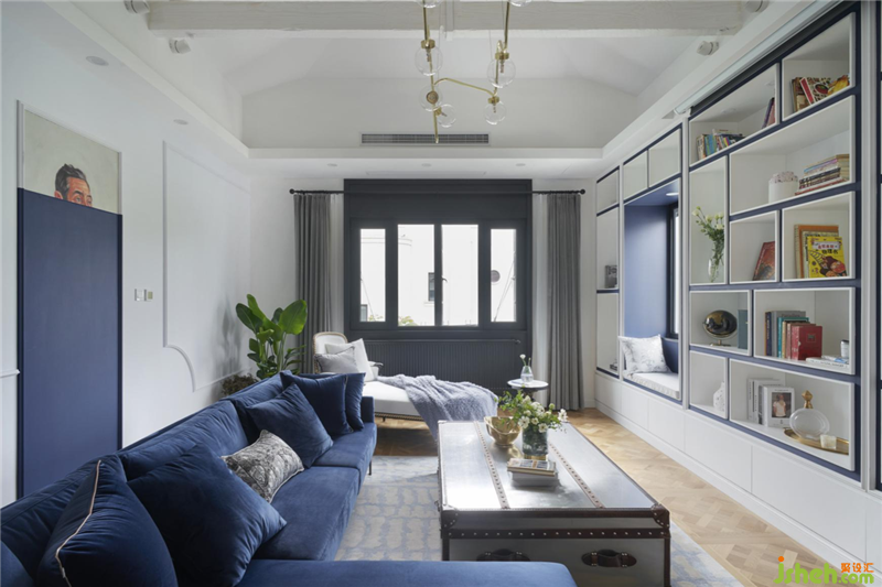 業(yè)主本身是很喜歡讀書,希望有大量的閱讀空間,所以在客廳的區(qū)域做了整面墻的書柜,也讓書柜的形態(tài)形成了很好的背景墻。甚至將飄窗的理念植入到書柜當(dāng)中,也讓做業(yè)主到了不管坐在哪兒,都能隨手拿起一本書就能進(jìn)行閱讀,囤積書籍的同時可以充實自己,帶來滿滿安全感。