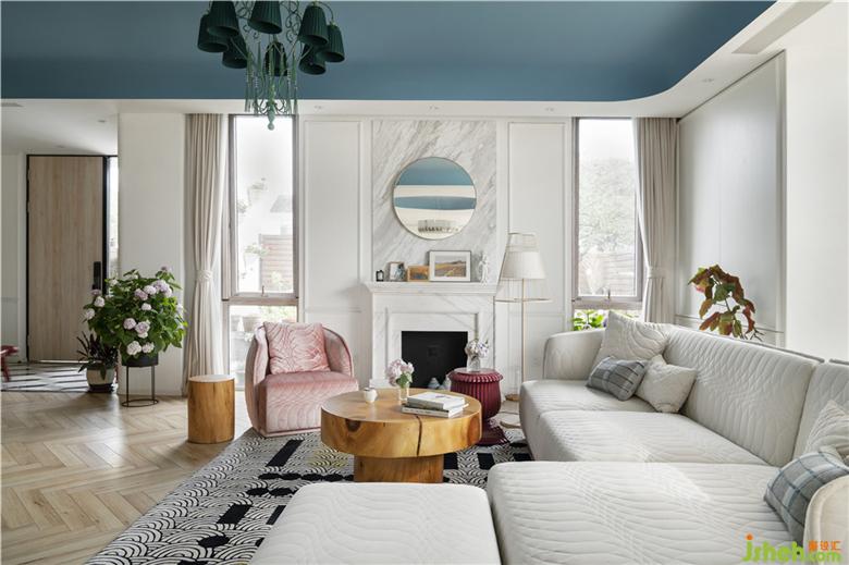 對(duì)“大?!钡那橛歇?dú)鐘,來自Ada多次攜家人一起海島度假的經(jīng)歷,海風(fēng)拂面的滋味每次都會(huì)觸及她心底最柔軟的部分。別墅設(shè)計(jì)客廳以藍(lán)白色為主調(diào),像極了愛情海島嶼的經(jīng)典配色。曾經(jīng)的半窗都改造成落地窗,最大限度引入屋外的園景和天光。