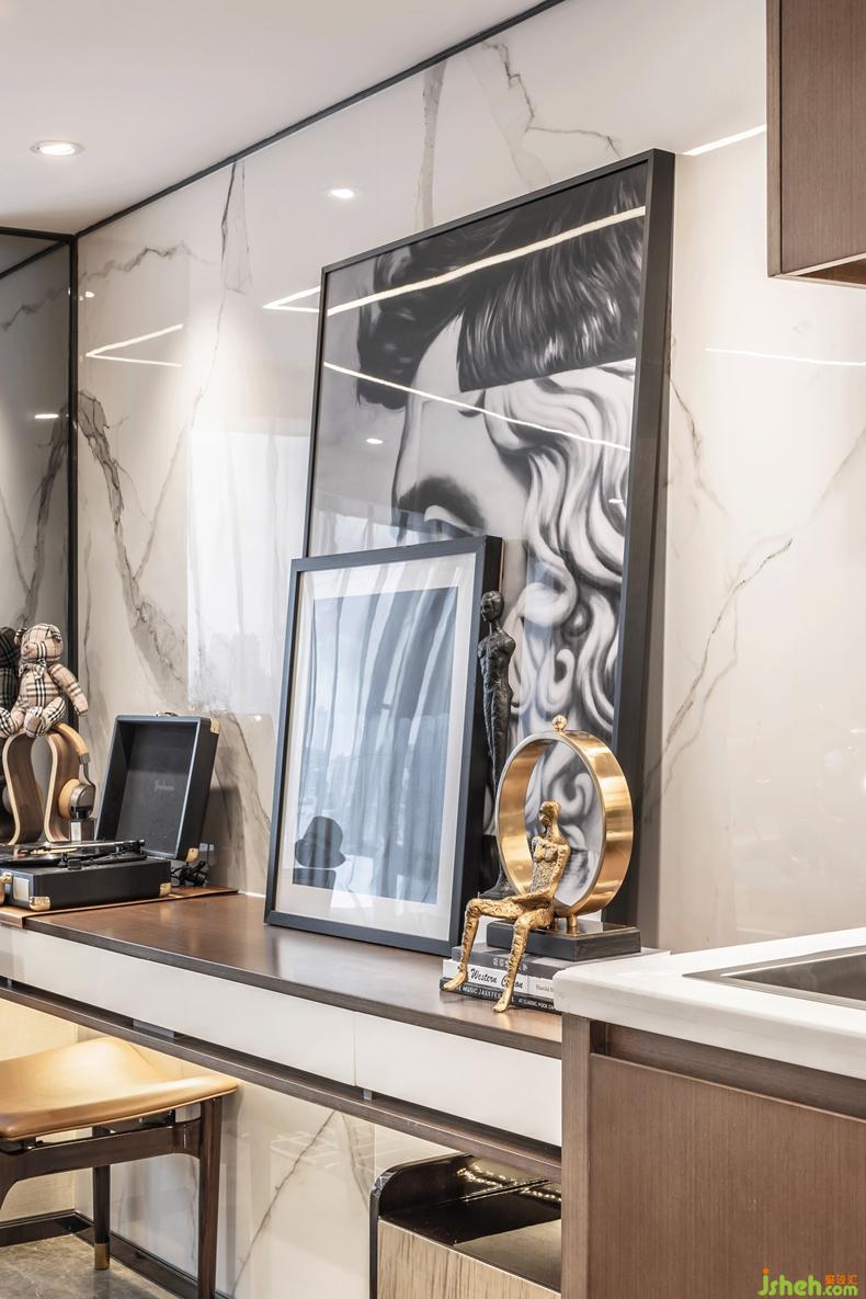 所謂儀式感,是用喜歡之物取悅自己,或是一件精品,或是坐在窗前獨享某個時刻。室內(nèi)設計師為了營造空間親切感和故事化,空間大部門藝術擺件,都是女主在世界各地旅行時購買的紀念品,塑造更為飽滿的人物性格。