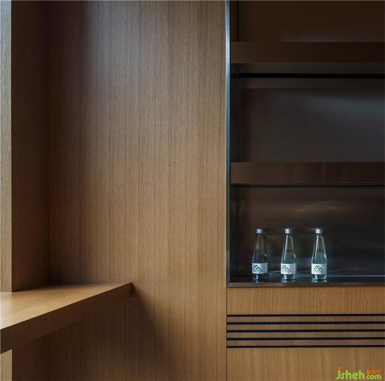 室內(nèi)設(shè)計(jì)以溫潤(rùn)的木制和黑色硬質(zhì)鋪裝為主色調(diào),淡綠色色調(diào)與之融合,營(yíng)造出靜謐安然的休憩之境。
