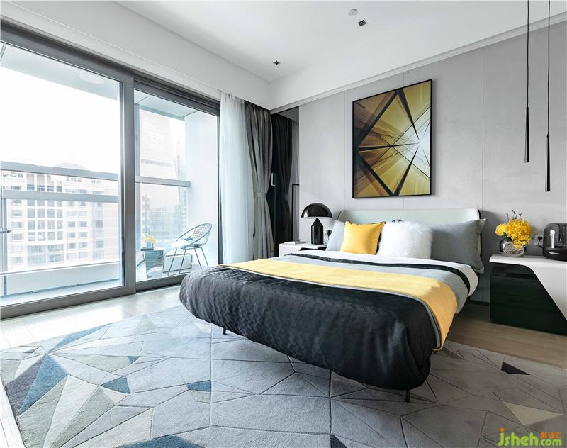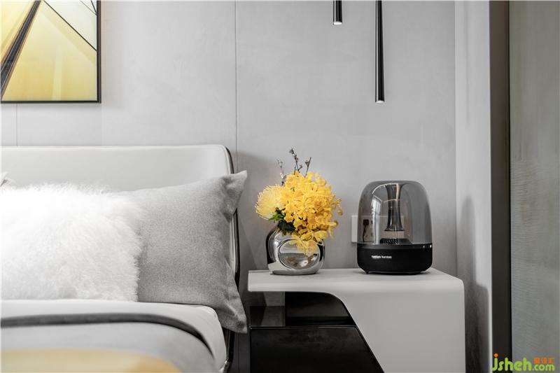 造型簡(jiǎn)潔明快的桌椅,兼具科技感與未來(lái)感。主臥明黃花卉、裝飾畫(huà)、抱枕、絨毯默契組合,醞釀出明媚、溫馨、舒適的空間感受。