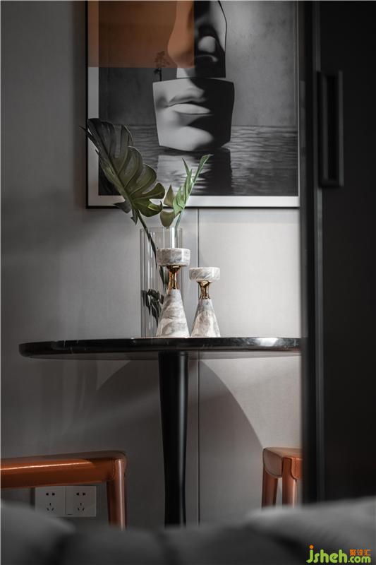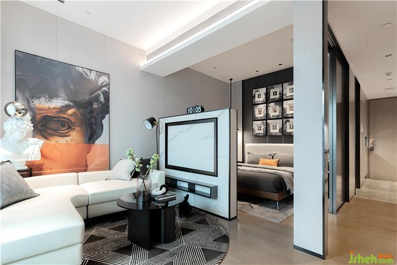 幾何立體拼貼的地毯和線條棱角分明的掛畫(huà),紋理清晰有力,層次立體,彰顯了主人前沿新銳的個(gè)性與品味。