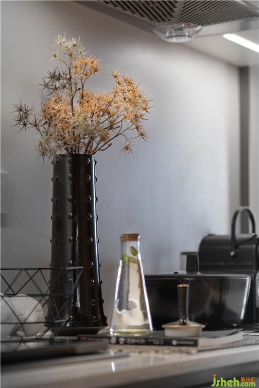 進(jìn)門(mén),穿過(guò)一條狹長(zhǎng)的走廊,遠(yuǎn)遠(yuǎn)瞥見(jiàn)橙色餐椅,一種“山有小口,仿佛若有光”的心境油然而生,行至客廳豁然開(kāi)朗。軟裝設(shè)計(jì)順勢(shì)而為,引導(dǎo)探索內(nèi)心桃花源的空間語(yǔ)境。