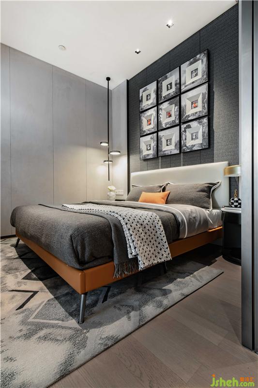 臥室床榻與抱枕的愛馬仕橙色輝映成趣,成為無法忽略的視覺焦點(diǎn),點(diǎn)亮了整體空間的生氣。