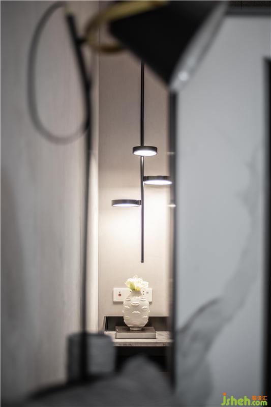 錯(cuò)落有致的吊燈下,一趣致花瓶,一潔白鮮花,芬芳吐露,滿室清雅寧人。安靜清甜的睡夢里,唯愿誤入藕花深處,沉醉不知?dú)w路。