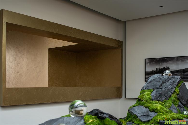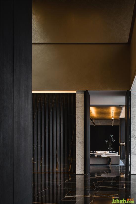 經(jīng)典黑白與金配色,在極簡(jiǎn)的幾何線條感的空間節(jié)奏中,呈現(xiàn)出交替、變換的強(qiáng)大藝術(shù)表現(xiàn)力,藝術(shù)審美的純粹感與當(dāng)代人居生活的豐富性,營(yíng)銷中心設(shè)計(jì)在構(gòu)造的細(xì)部質(zhì)地的作用下,形成空間的戲劇張力。