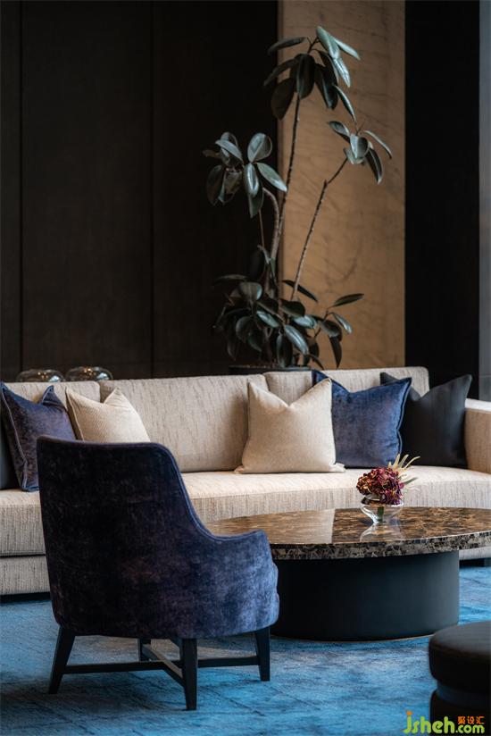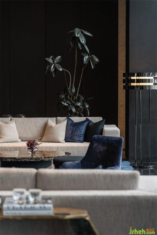 暗調(diào)之下,洽談舒適、淡雅的情調(diào),上升為顯露于外的清淺表達(dá),綿密厚實(shí)的布藝與絨,營(yíng)銷中心設(shè)計(jì)以色彩的淡雅與觸感的細(xì)膩溫潤(rùn),跳脫于四周圍合的深沉感,承載人們談話的私密與松弛氛圍。