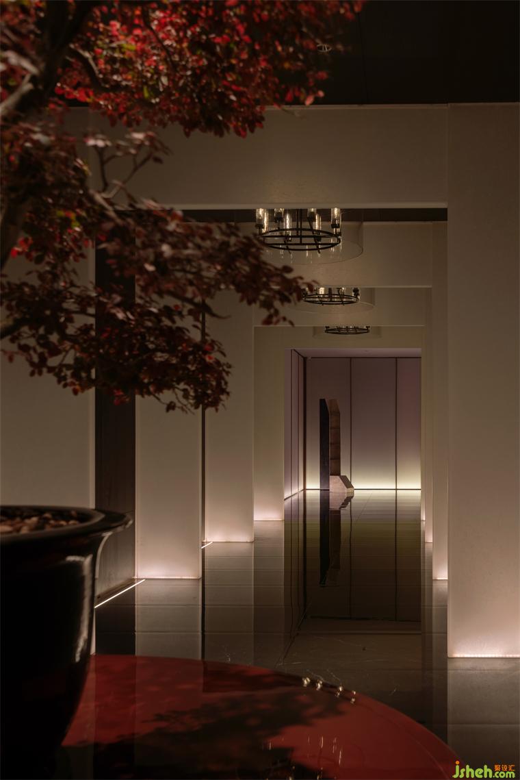 虛實相交、平衡對稱,這種強烈的序列感構(gòu)成了空間秩序嚴謹?shù)拈_端,西安營銷中心設(shè)計經(jīng)由長長的過廊進入,隨著人們視野的打開,空間轉(zhuǎn)換語調(diào),將儀式感神秘的代入氛圍調(diào)和為輕巧的、舒緩的“造園”意趣。