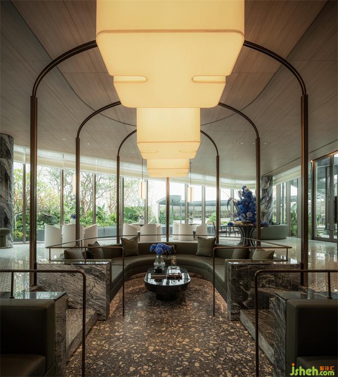 國貿(mào)海嶼原設(shè)計(jì)在此基礎(chǔ)上,軟裝將設(shè)計(jì)表達(dá)的核心,回歸空間主題呼應(yīng)的匹配度與細(xì)膩感,海貝晶瑩通透的燈飾、疊加金屬元素的別致而復(fù)古,以充盈空間細(xì)部的輕盈姿態(tài),呈現(xiàn)延續(xù)如一的視覺感受與空間韻味。