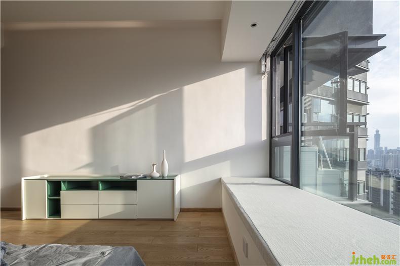 這次的設(shè)計里“借”了很多光,采用大落地窗的形式,讓窗外的好景成為家中天然的裝飾畫。
