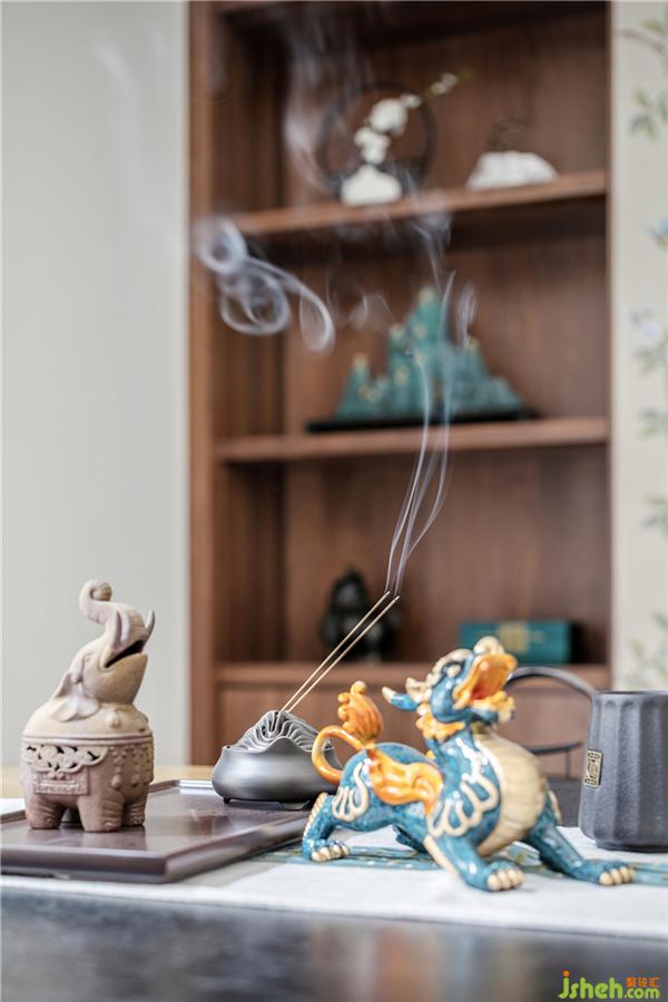 Put on the exquisite books and decorations, the overall space appears particularly elegant and dignified.