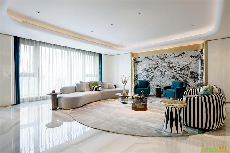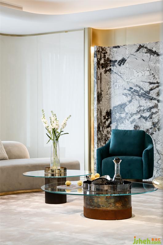中鐵元灣豪宅設(shè)計(jì)在整個(gè)空間中很少使用令人沉悶的顏色,加入了明朗具有生機(jī)的藍(lán)色了,使整個(gè)空間不會(huì)壓抑。整個(gè)空間注重色彩的搭配,金邊線條的點(diǎn)綴,營(yíng)造穩(wěn)定,協(xié)調(diào),溫馨的空間感受,使得空間簡(jiǎn)約卻又不失優(yōu)雅。