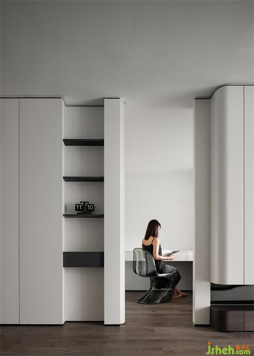 一室干練,格調(diào)至上。不需過(guò)多言語(yǔ),居者對(duì)生活的寄語(yǔ),已在微觀處的精雕細(xì)琢成為投射,材質(zhì)考究,光影自成,精致基調(diào)已定,場(chǎng)域交由未來(lái)生活的內(nèi)容去豐盈。