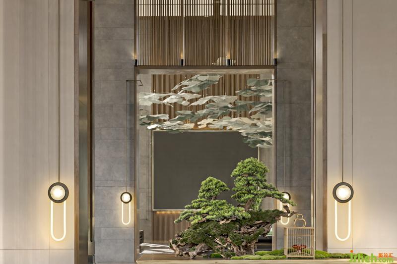 枯樹,在東方文化中是一種古老的美學(xué)意向,寓意生衰。入口處,巍峨高聳的枯樹將堅(jiān)韌的品質(zhì)注入前廳空間,歷史的風(fēng)云際會(huì)與古往今來(lái)的名流傳奇交融成華麗的篇章,手工藝人用嫻熟的技法將其繪入金色的朝云,室內(nèi)設(shè)計(jì)師以千山獨(dú)行的傲然風(fēng)骨層層席卷著感官與知覺,本真的智慧和美褪去了一切凡俗形跡。