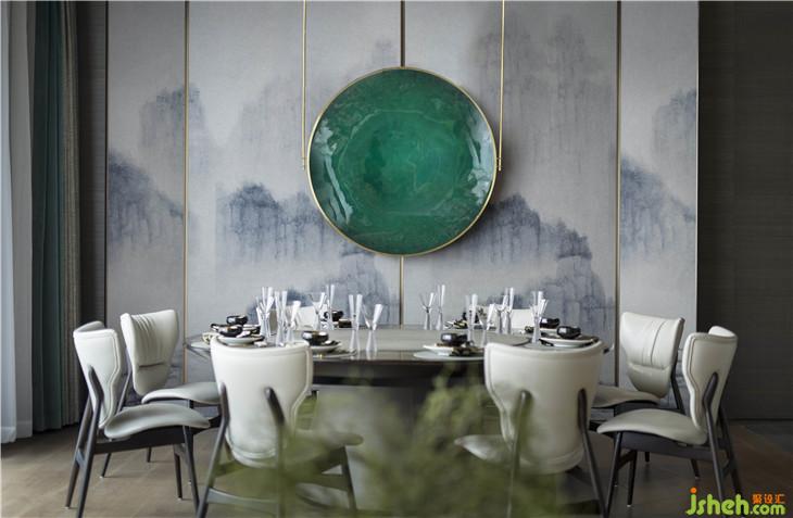 私宴廳取“團(tuán)圓”之意,運(yùn)用圓桌、圓燈、圓盤(pán)等元素,勾勒上幾筆金屬線條,營(yíng)造出濃郁的海派東方氣場(chǎng)。丹青屏風(fēng)反映每位賓客的愿景,胸中有丘壑,眼里存山河。
