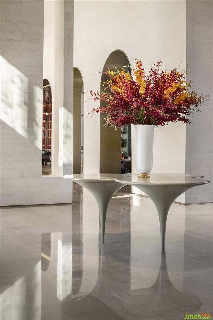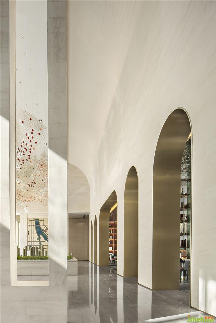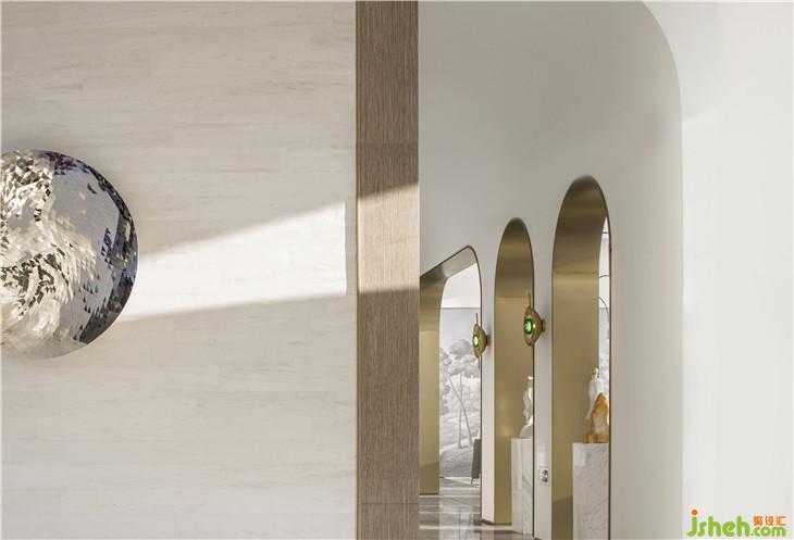 淺洽區(qū)將拱門元素運(yùn)用到了極致,簡(jiǎn)潔利落的弧形內(nèi)側(cè)鑲上了金邊,傳統(tǒng)元素與當(dāng)代藝術(shù)的碰撞賦予拱門新時(shí)代的定義。