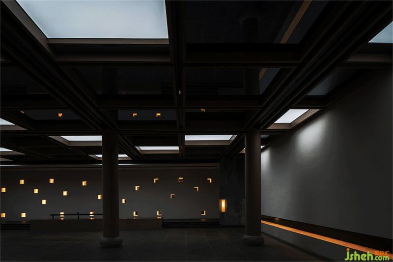 大廳天花發(fā)光格的設(shè)計(jì)靈感來(lái)源于古建的藻井,運(yùn)用現(xiàn)代的手法及語(yǔ)言進(jìn)行重新詮釋。通過(guò)可調(diào)節(jié)的燈光賦予空間無(wú)限的可能性和想象延展。