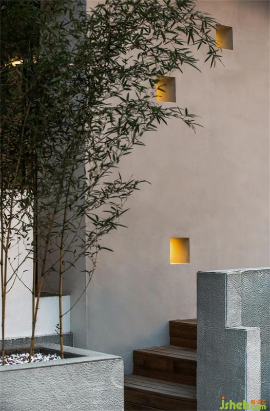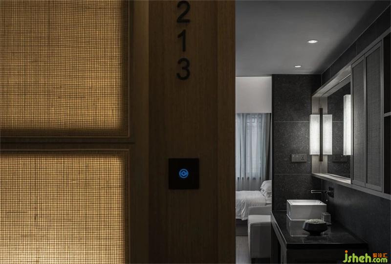 客房走道結(jié)合現(xiàn)有的建筑墻體形態(tài),通過凹凸形體的構(gòu)成關(guān)系,運(yùn)用藤編和燈光的組合,營造除質(zhì)樸且細(xì)膩的通道氛圍。