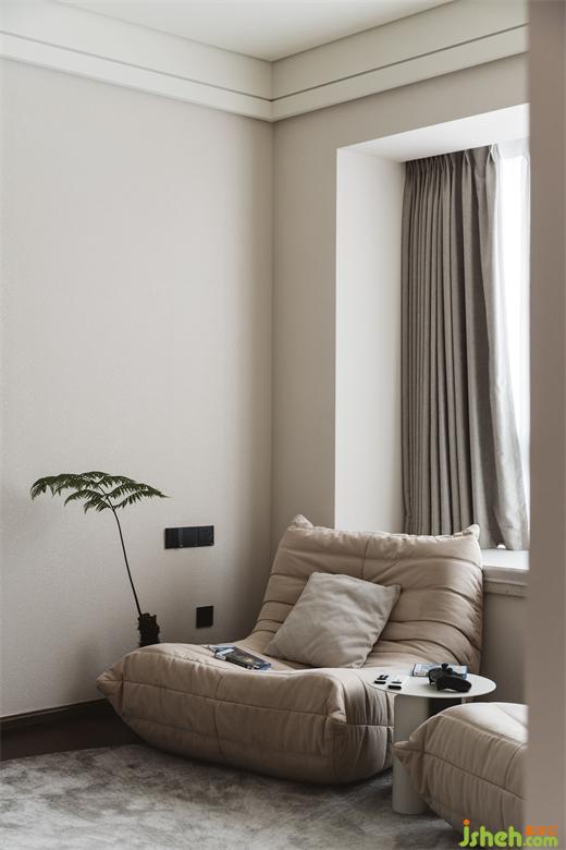 純色、平和的掛畫與心靈呼應(yīng),明暗對比,烘托意境。