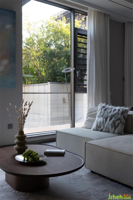 客廳通透的全落地窗戶,隨著陽光的律動不自覺地放松了整個身心。