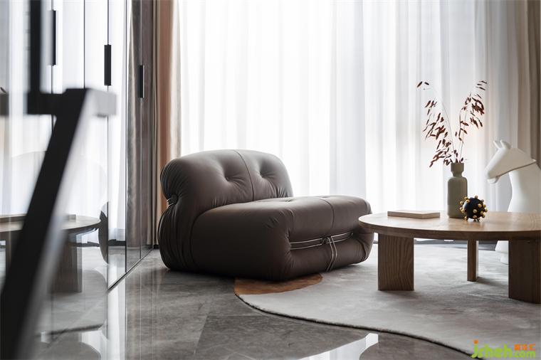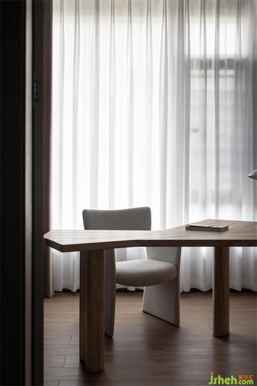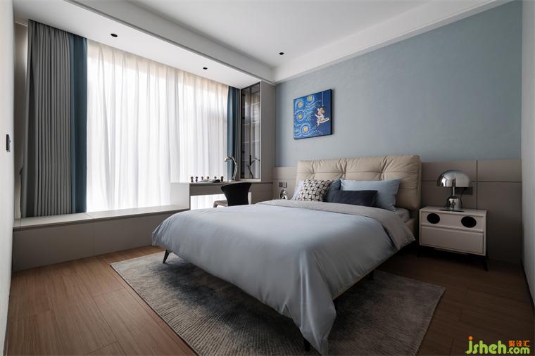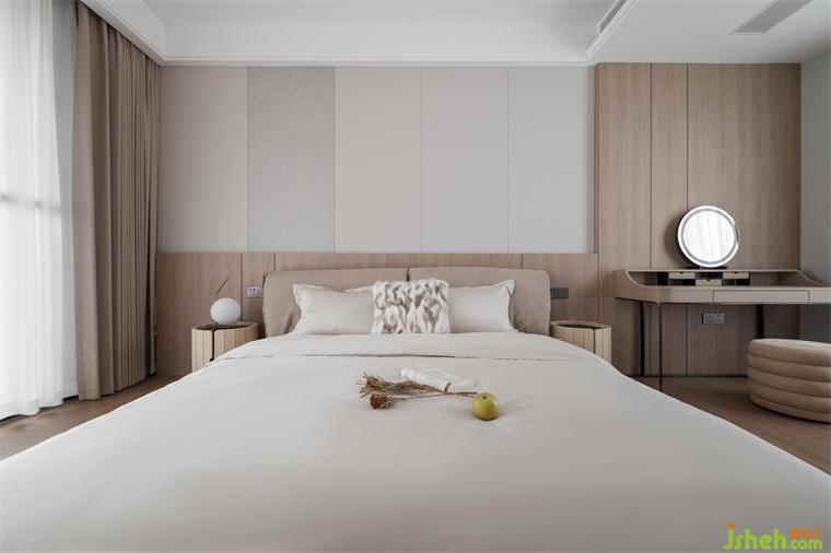 主臥空間充盈著光和寧?kù)o,層次分明的床品織物布置,營(yíng)造出暖意和質(zhì)感。