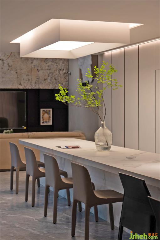 會客廳寬敞的極簡皮帶燈的點綴下,形成浪漫的觸點。珠海別墅設(shè)計從細(xì)膩材質(zhì)對比和空間尺度的收放入手,調(diào)動起居者對于美好生活豐富而立體的的感知。通過詩意而富有溫度的藝術(shù)語言描摹空間氣度。優(yōu)越的居住體驗與極致的美學(xué)沉淀逐一貼合,生活里的至情至味,悠長而遼遠(yuǎn)。
