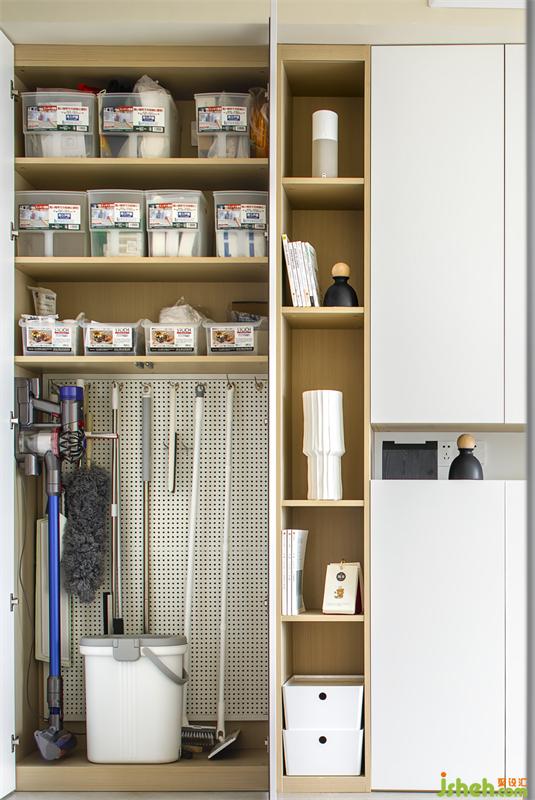 客廳收納柜的設(shè)計(jì)中重點(diǎn)關(guān)注家政清潔柜的擺放,定制洞洞板懸掛清潔工具,吸塵器/掃把/拖把桶/刮玻璃工具/彈灰棒/等工具懸掛。上方前期設(shè)計(jì)好的收納盒大小,安置工具箱/藥箱/電器說明箱/備用物品分類等,使家務(wù)動(dòng)線更加清晰明確。其他區(qū)分門別類的區(qū)分了舊物//棉被/運(yùn)動(dòng)健身套裝/換季家電/換季衣物/行李箱/玩具箱/舊衣物等日常家庭所需的收納空間。