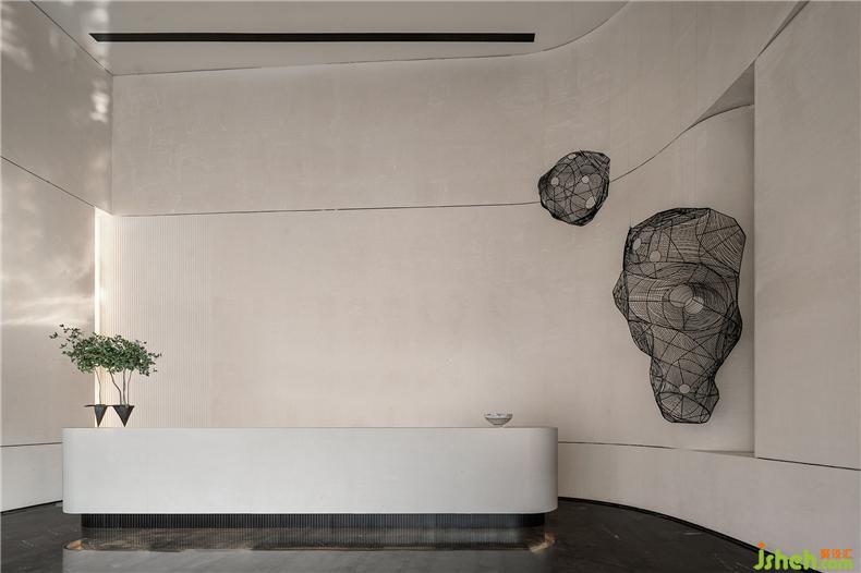 簡(jiǎn)潔的線條,基礎(chǔ)且高級(jí)的大地色系,搭配大塊面設(shè)計(jì)手法,打造一個(gè)現(xiàn)代閑適的多元化場(chǎng)景體驗(yàn)空間。室內(nèi)設(shè)計(jì)師潔白簡(jiǎn)約的接待臺(tái),以圓滑的線條型,呼應(yīng)墻面的弧形,體現(xiàn)徐州草編藝術(shù)的藝術(shù)吊飾,為空間注入靈動(dòng)的文化筆墨,使來者舒適且輕松。