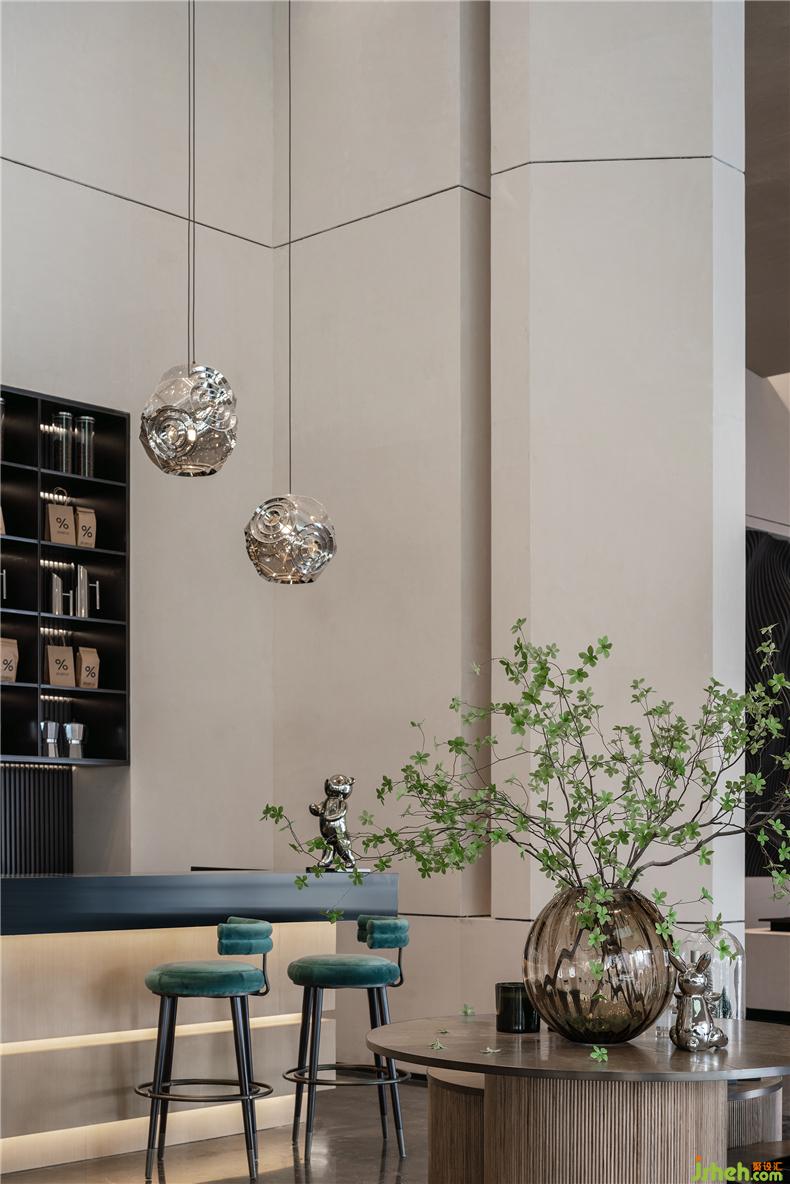 在設(shè)計(jì)中,我們?cè)谛蓍e洽談區(qū)中置入咖啡吧,弱化傳統(tǒng)售樓處的商務(wù)屬性,室內(nèi)設(shè)計(jì)師更多強(qiáng)調(diào)人在空間內(nèi)產(chǎn)生交流、互動(dòng)的社交屬性,通過一個(gè)個(gè)親近的社交場(chǎng)景漫談現(xiàn)代格調(diào)生活,讓空間的感覺自然流動(dòng)。未來它可能會(huì)留存成為社群聚合的連接點(diǎn),長(zhǎng)久地融進(jìn)人們?nèi)粘I畹脑妼W(xué),香氣氤氳。
