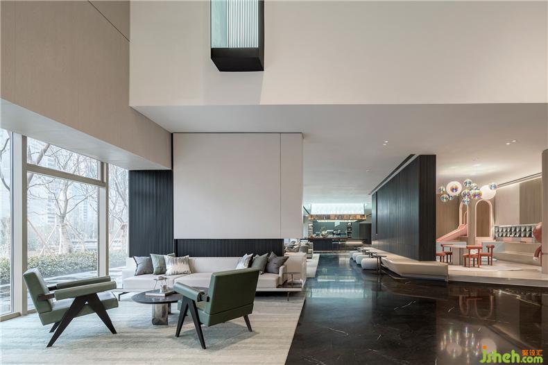 在體現(xiàn)產(chǎn)品精工細筑的同時,設計師希望這個空間能夠使得未來的生活成為可想象、可觸摸、可感知的具象客體。在石材構(gòu)成的大氣磅礴的空間格局彰顯不凡,又用溫暖的木色和充滿人情味的功能設置來撫慰那些在日常社會中砥礪前行的業(yè)主們。