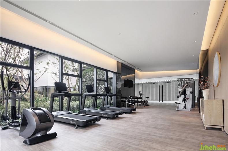 健身房營造出自然輕松的氛圍,單面的斜頂從傳統(tǒng)建筑演繹而來,演繹傳統(tǒng)與現(xiàn)代的對話,大面積的窗景賞心悅目,使健身時得到身心的放松。