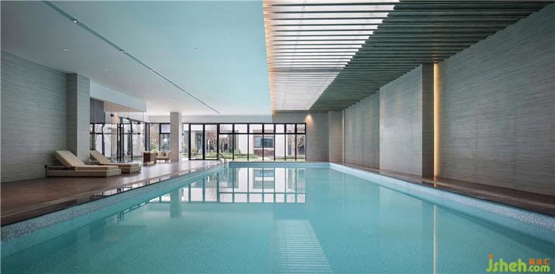 泳池運(yùn)用建筑構(gòu)成的手法,真實(shí)的天光從木色的格柵灑下來,虛實(shí)的結(jié)合,光與線的交錯,嘉興售樓處設(shè)計(jì)使整個空間更加愜意悠然。