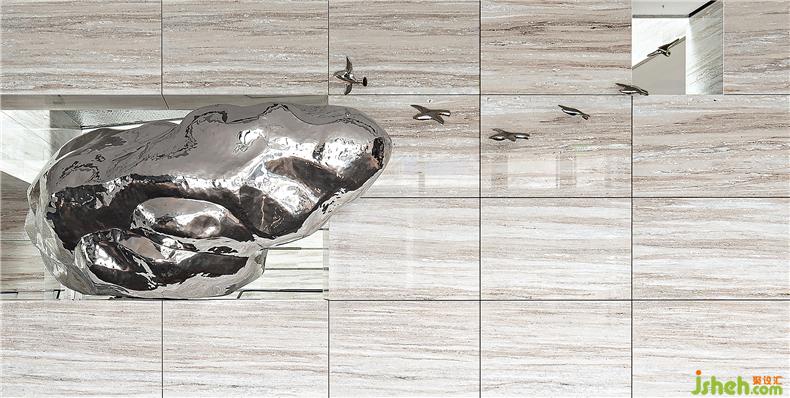 開(kāi)闊的接待空間,藝術(shù)雕塑《飛躍巔峰》把超然的銀色金屬體態(tài)擬于成“山”,與庭院的水景相呼應(yīng),金屬材質(zhì)的飛鳥(niǎo)帶入自然的生動(dòng)感 ,形成“居山而樂(lè)水”的藝術(shù)意境。藝術(shù)雕塑靈感來(lái)源于泰山,國(guó)泰民安為生活幸福的基礎(chǔ),寓意峰層客群對(duì)生活與夢(mèng)想的不斷超越,體現(xiàn)了“讓生活更美好”的美麗愿景。以當(dāng)代手法詮釋傳統(tǒng)文化精粹,造就空間的靈動(dòng)性,生活感。