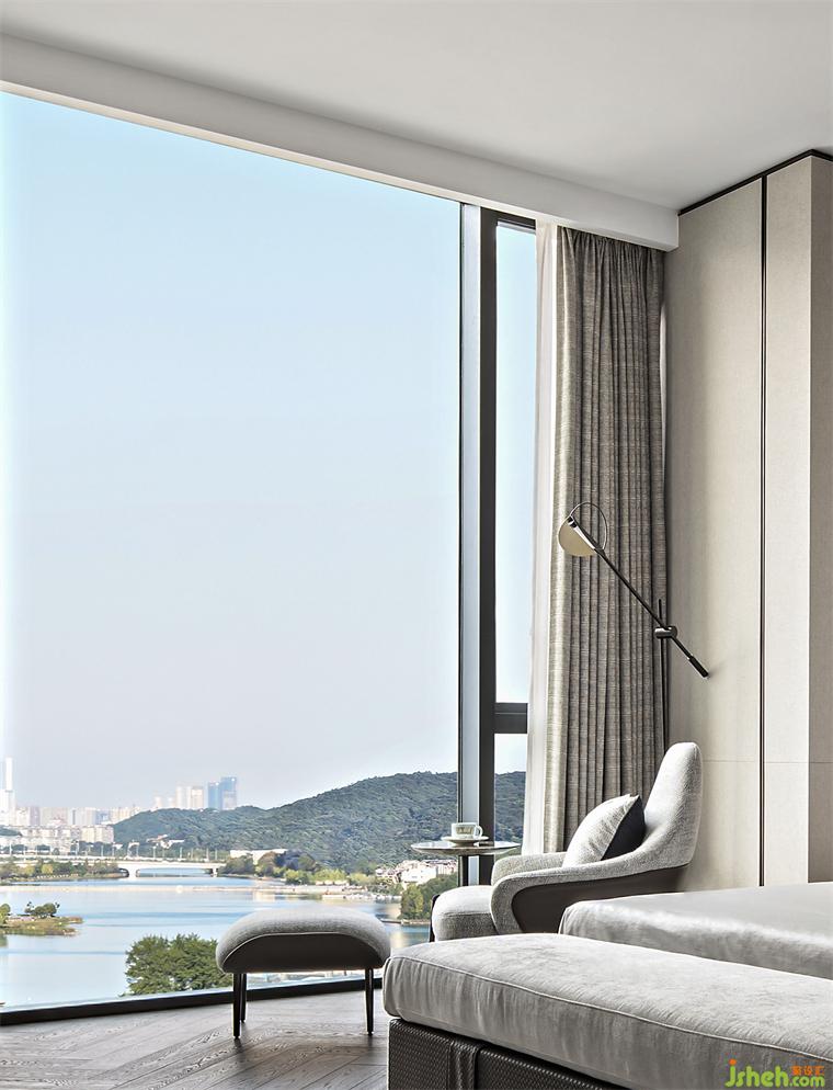 兒童房將梅溪湖的湖水藍(lán)引入室內(nèi),寥寥幾筆描摹出空間的生命與活力。老人房以更加沉穩(wěn)雅致的色調(diào)與敘事,道出歷盡浮華喧囂之后內(nèi)心的豐富平和。