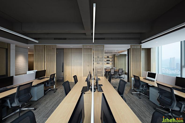 原木色格柵隔斷門虛實掩映,開合之間,透露靈秀。辦公桌利用白色板塊劃分各部門,塑造開放性與私密性,鼓勵員工們在舒適自然的氛圍中研究與討論,從而激發(fā)更多的靈感。