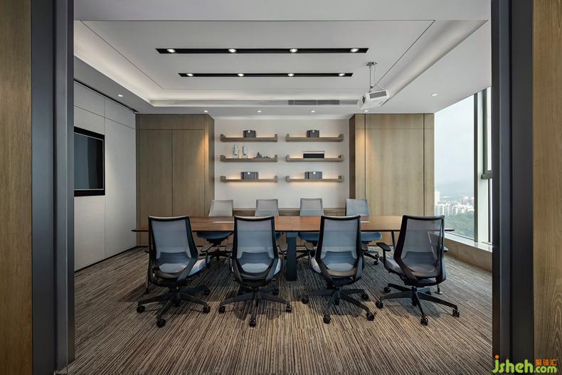 會議室設(shè)置在開放辦公區(qū)域旁邊,方便與會者快速直接到達。辦公室設(shè)計會議室擁有充足的自然光線及窗外極佳視野,將壓抑和沉悶一掃橫而空。另外,會議室安裝了視頻會議系統(tǒng)及智能辦公系統(tǒng),彰顯靈活、嚴謹高效的工作態(tài)度。
