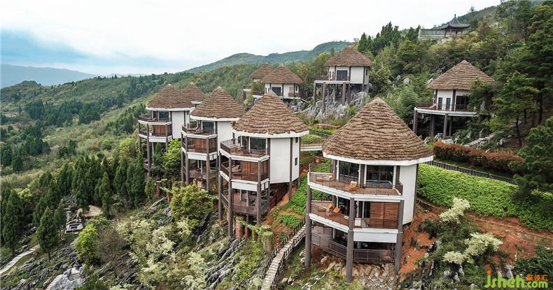 碧峰數(shù)座,嘉樹成蔭,茅舍數(shù)間隱于叢林之中,環(huán)境清幽。山居左右,湖水環(huán)繞,水平如鏡。酒店設計遠處山巒起伏,連綿不斷。此般寄情于山水的山居之致,不僅是當今趨勢,更是必然的回歸。