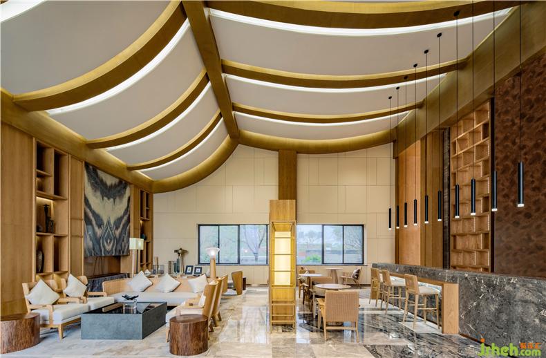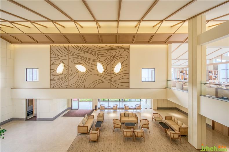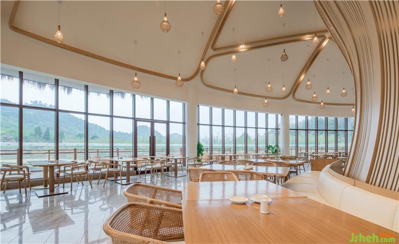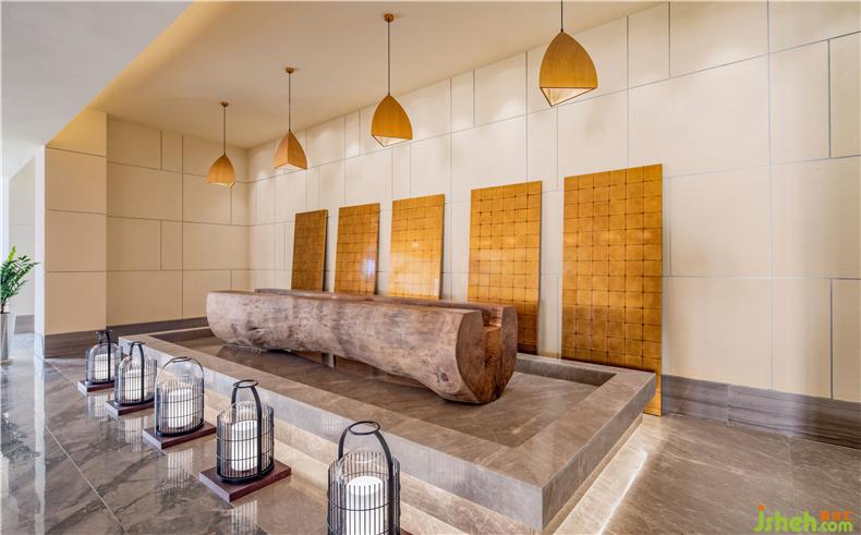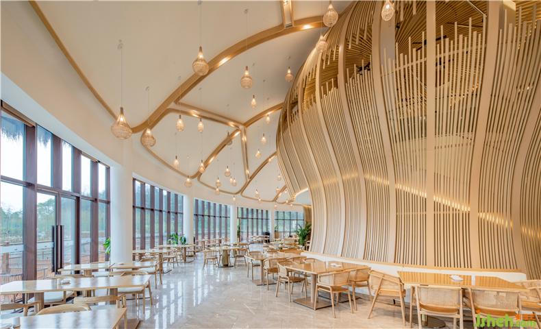 稻田餐廳的空間感、線條感及陳設(shè)藝術(shù)感都能透過“意”去參透東方那種含蓄而深遠的美學(xué)修養(yǎng)。裝修設(shè)計陳設(shè)色調(diào)與濕潤的木色主調(diào)和諧統(tǒng)一,編藤織物以起伏的形態(tài)穿插于空間的流動之中,演澤空間的色香味俱全。酒店設(shè)計
