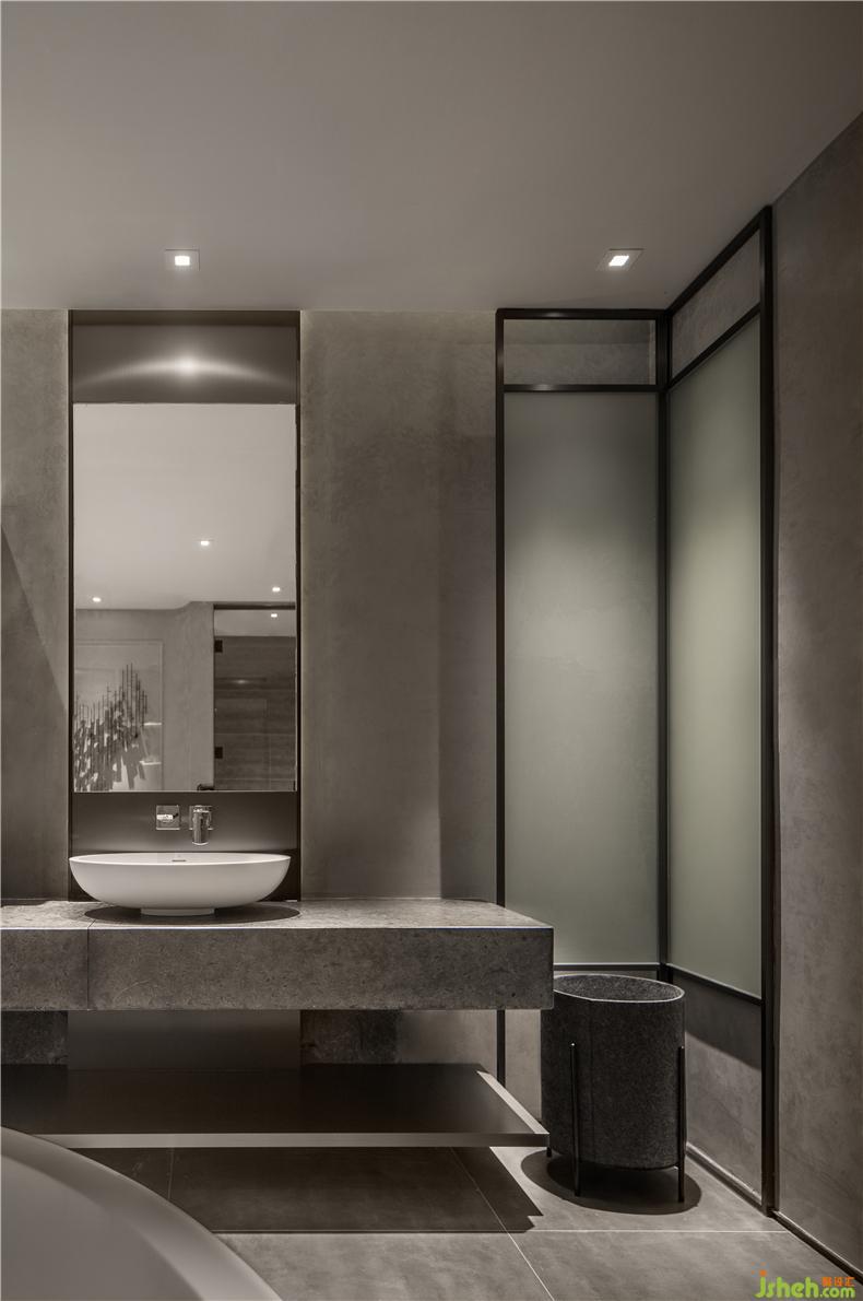 簡約的型體,輕盈靈動,清透空曠區(qū)域,就好比紗質(zhì),在沉重的空間帶來呼吸感,使空間活起來。衛(wèi)浴間雖是最隱秘的區(qū)域,卻是最能令人放松的空間。沐浴間配有精美妝面鏡,使視覺上變得更加明亮寬敞。會所設(shè)計墻面凹處掛著一副創(chuàng)意金屬壁飾,在燈光的映射下,讓浴室空間在沉凈素雅中而不失靈動。盥洗間的臺盆處,造型獨特的金屬玻璃吊燈,精致而細(xì)膩,從細(xì)節(jié)體現(xiàn)出設(shè)計者對高品質(zhì)生活的追求。