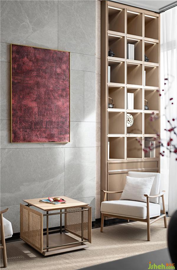沙盤區(qū)作為一個重要的展示和重塑城市居住方式的一個關鍵場所,樣板房設計巨大的造型燈承載著項目的一派盎然生機;裝飾畫延伸梧桐山的山林逸境。